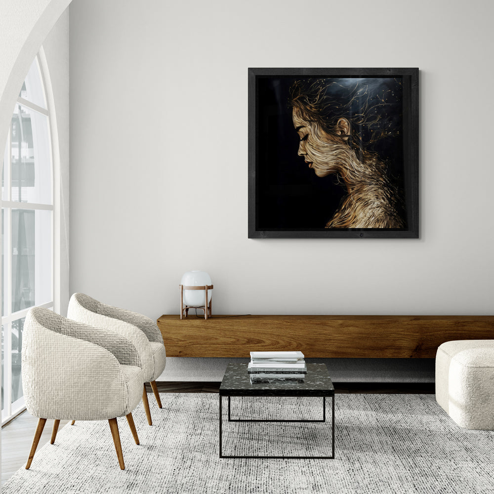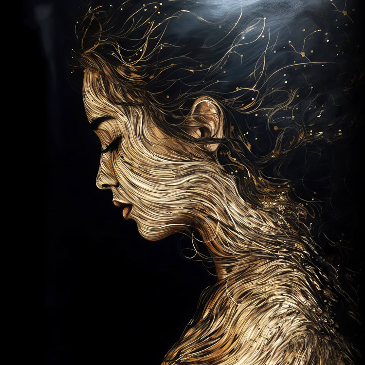 Shanti staat voor vrede. Een sereen figuratief kunstwerk dat rust uitstraalt.